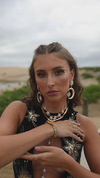 - As seen in Florida Man on Delly West (Abbey Lee)! Our Star Spangled Drop Necklace is a rhinestone-studded choker necklace with a long drop that essentially looks like a body chain (without it wrapping around your waist or chest, so you don’t have to worry about it fitting your chest or waist! Absolutely spectacular indeed!). Each star is studded with tiny rhinestones for lots of sparkles and shine!