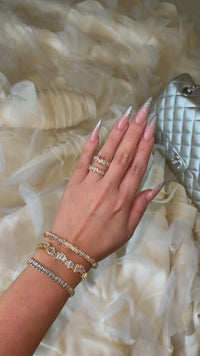 - Our most sought after ring! Our Esra Cluster Ring is an exquisite ring that features a unique, uneven row of rectangular, baguette-cut cubic zirconia. This ring is edgy, yet glamorous all at the same time!