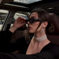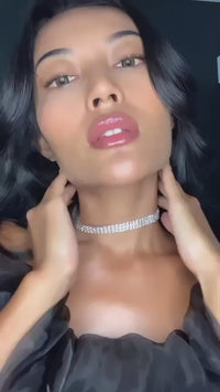 - Reina Rhinestone Choker is the perfect necklace for adding a just bit of sparkle and glam to your outfit. The charm of this choker comes from its simple, minimalist line of festive rhinestones. Wear it alone or layer with other necklaces for a style that is uniquely you!!